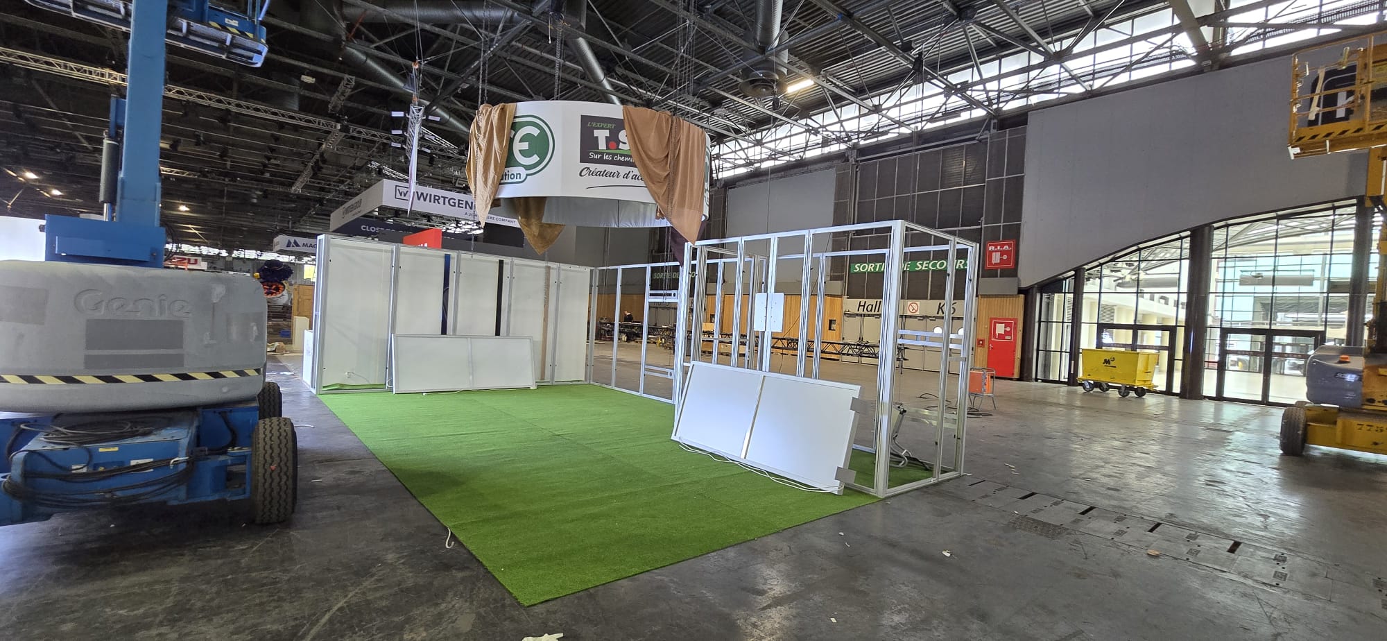 Le prémontage de stand consiste à assembler intégralement votre structure au sein de notre atelier avant son installation sur le salon. Cette étape permet de vérifier chaque élément technique et visuel afin de garantir un montage fluide et conforme le jour J.